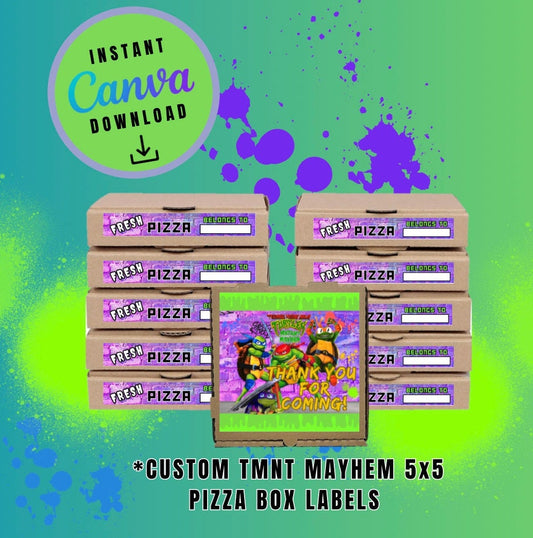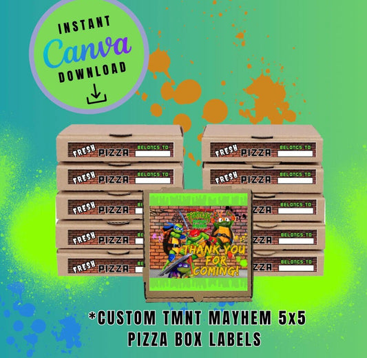 Mutant Turtles 5x5 Pizza Box Label Template, turtles Customizable Pizza Box Labels, Personalized Mutant Turtles Digital File Pizza Box