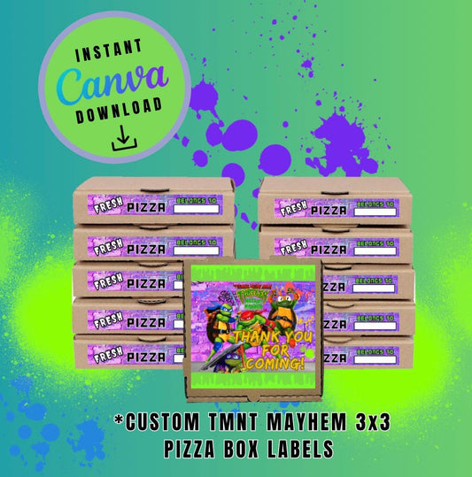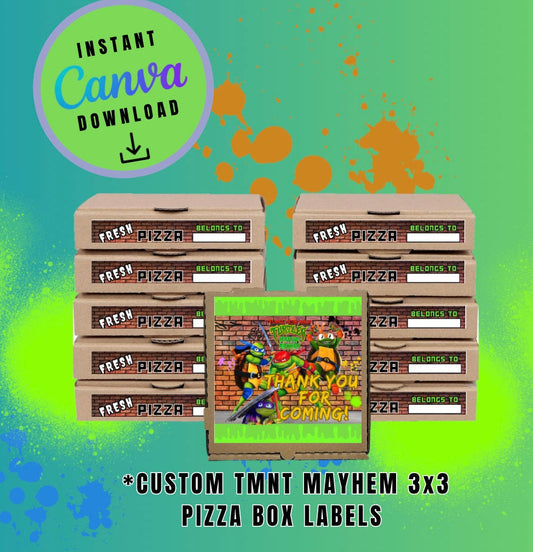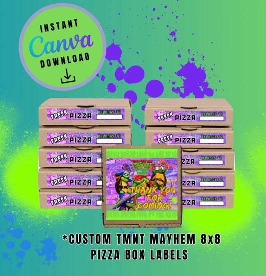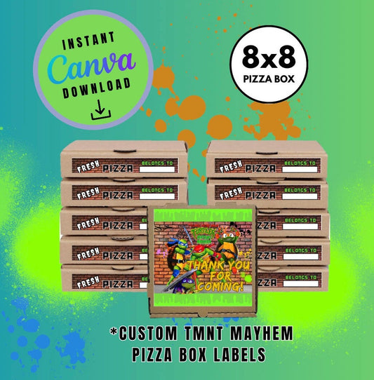 Mutant Turtles 8X8 Pizza Box Label Template, turtles Customizable Pizza Box Labels, Personalized Mutant Turtles Digital File Pizza Box