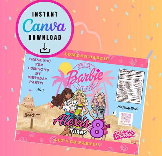 Barbie Caprisun Label Template, barbie doll Customizable juice box, Personalized doll Digital File juice, Instant Download Malibu barbie