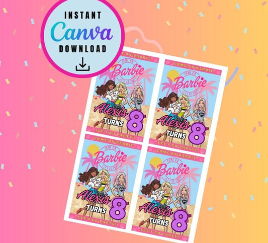 Party Favors , Custom Party Favors , Printable Party Favors , Personalize Party Favors , Party Items , Party Supplies , barbie Party , Instant Download , Digital File , Birthday , Baby shower , Gender reveal