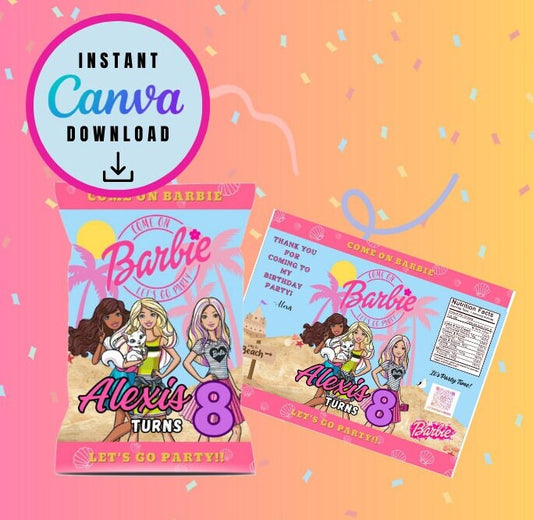Barbie Chip Bag Template, barbie doll Customizable Chip bag, Personalized doll and friends Digital File Chip bag Printable Instant Download
